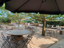 Capacités : 1 salle, 30 couverts maximum, 70 couverts en terrasse, 120 personnes maximum par groupe